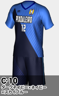 シャツの両肘とパンツの両腿にパッドが入った別デザインのキーパー用ユニフォームを1着からオーダー可能です。