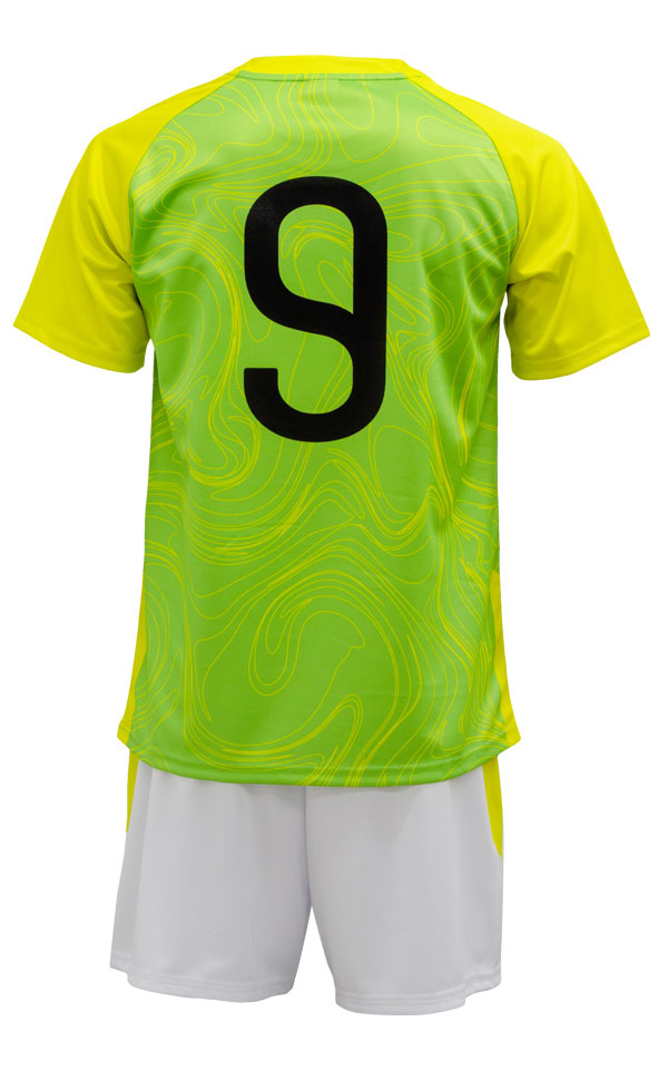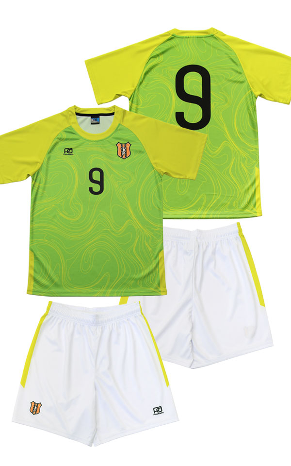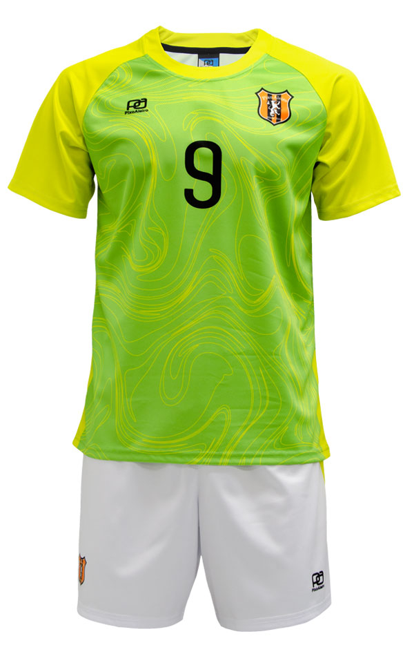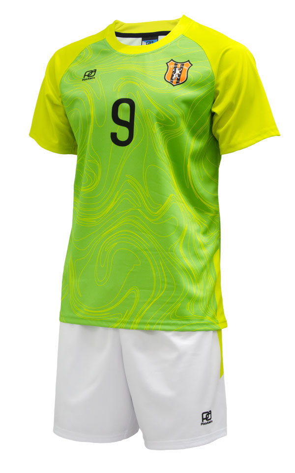 シャツの両肘とパンツの両腿にパッドが入った別デザインのキーパー用ユニフォームを1着からオーダー可能です。