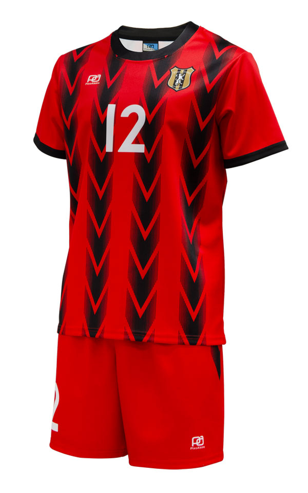 シャツの両肘とパンツの両腿にパッドが入った別デザインのキーパー用ユニフォームを1着からオーダー可能です。
